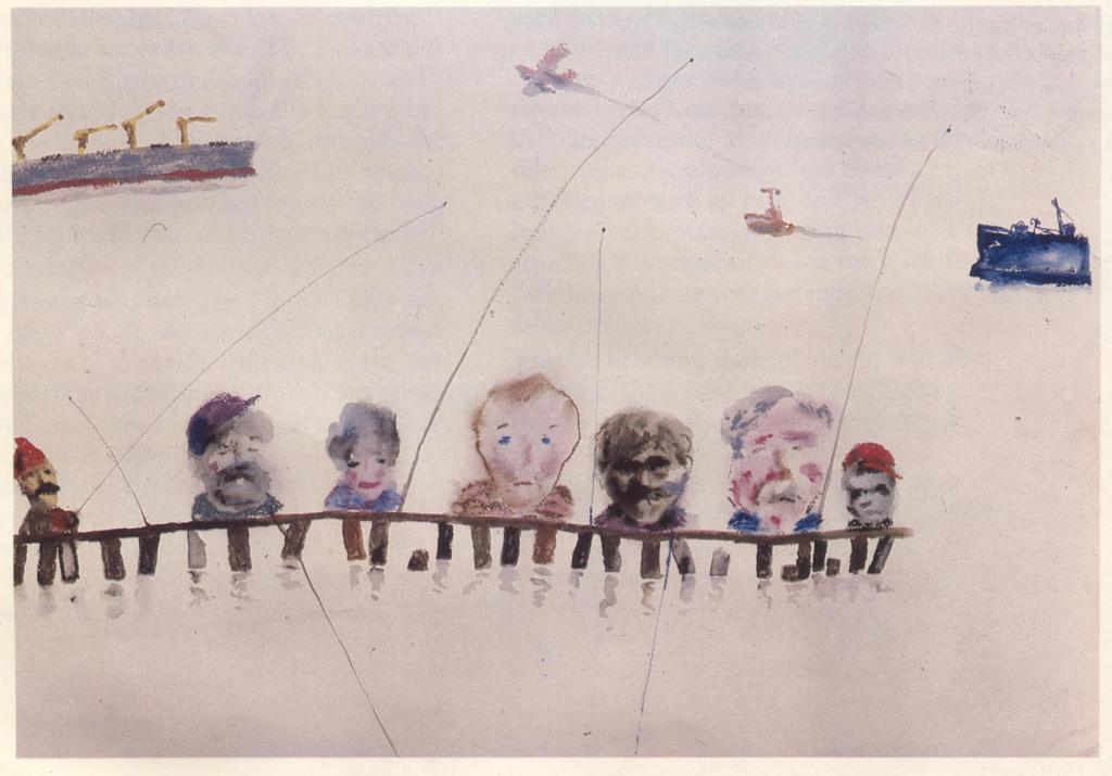 By the late 1980s, the McMahon’s had the extraordinary privilege of exhibiting or working with some of the most important Polish artists of that time. Wiktor Sadowski (b, 1956) spent several months with the McMahons in 1988 working on his portfolio which he lugged around on the subway calling on prospective commercial clients, often without an appointment. The New York Times upon seeing his impressive work offered Sadowski a commission on the spot to illustrate a story about families. Sadowski enlisted McMahon’s young son, Tadeusz, to serve as a model. His illustrations were published on the cover of the New York Times Magazine in January, 1989, and elsewhere throughout the article. Reportedly, the artwork elicited the most enthusiastic response the paper had ever received. This widespread exposure brought Sadowski numerous other commissions which he pursued upon his return to Poland. In 1995 he designed a poster for the Theatre de la Jeune Lune in Minneapolis for their production of The Hunchback of Notre Dame.