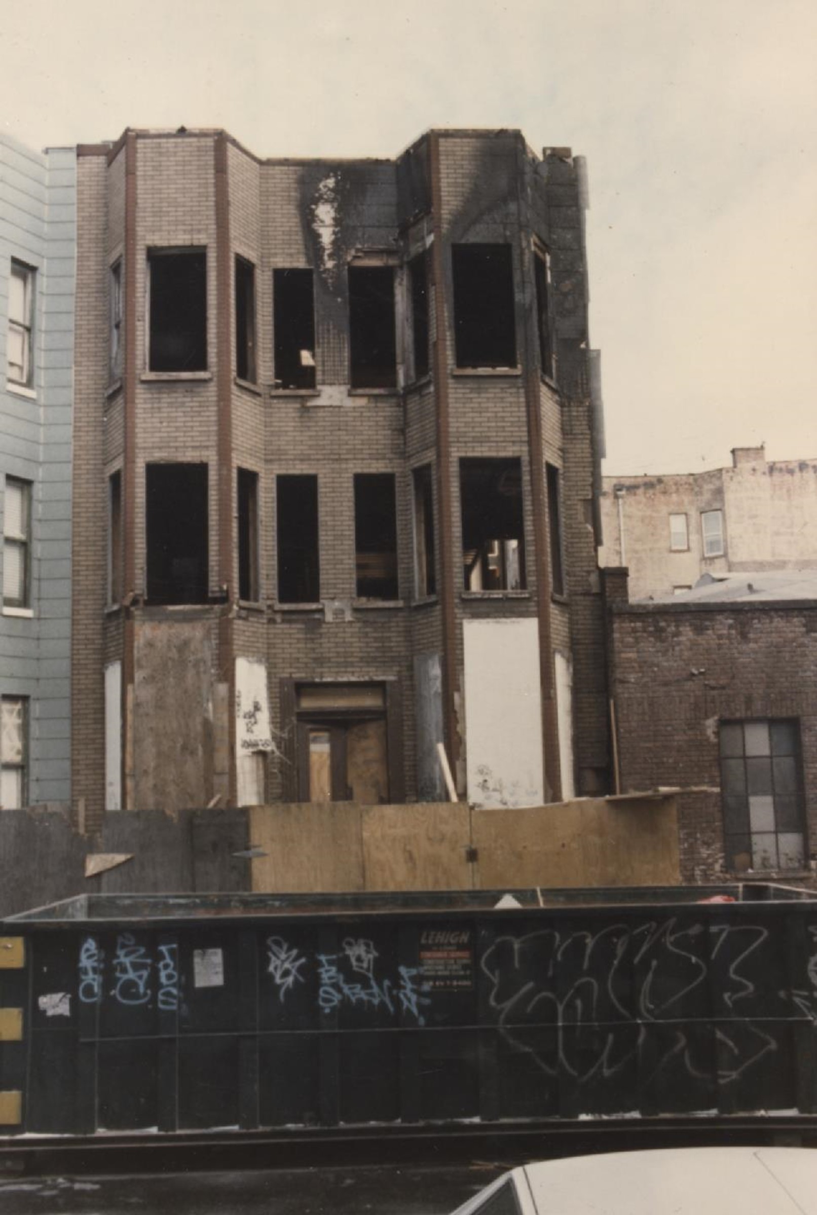 Brian McMahon settled in Greenpoint in 1983, where he established an architectural design-build business. They met and the following year got married. They bought a three-story row house on Clifford Place which had been gutted by fire. While making plans for its renovation, they decided to include a public art gallery for their own enjoyment and to provide a community amenity. They organized several exhibits at their FFA Gallery, featuring local artists who were able to sell their work directly to the public.