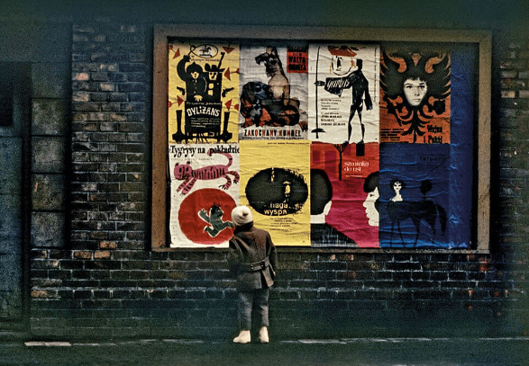 The ‘game’ played by the artists was to make extensive use of metaphor, symbolism, allusion, and visual puns to slip their message past government censors. In one noted example, Jan Sawka designed a circus poster with a trapeze artist walking high above the crowd wearing a prison garb. Extensive use of symbolism had the effect of bringing more attention to the posters, as the public grew accustomed to searching for hidden meanings. The lettering of most posters was done by hand, and the text became an important visual element. The human figure generally dominates the composition, with the face often rendered in profile view. Additionally, faces are frequently masked, often shown with various layers that are manipulated visually.